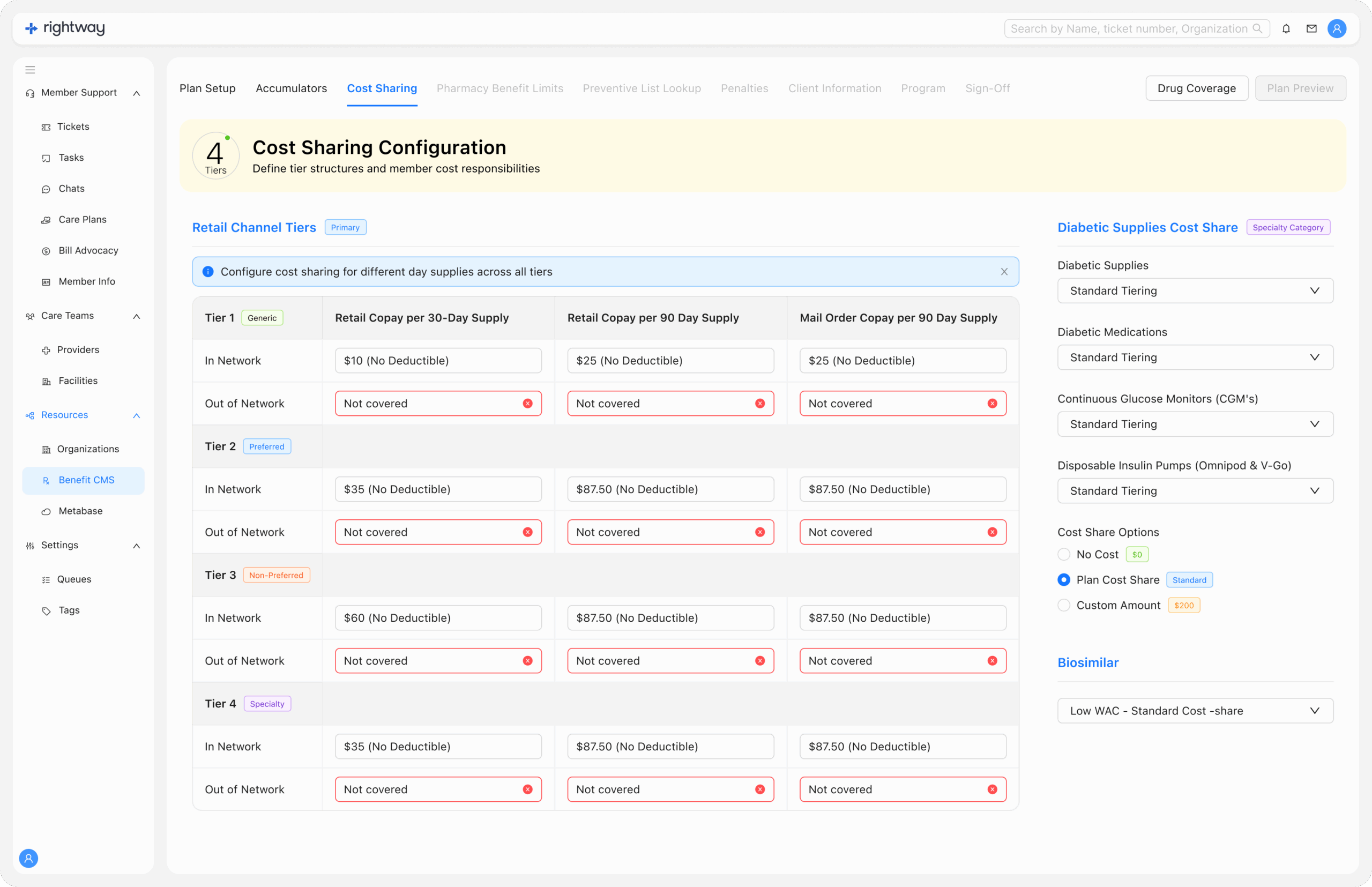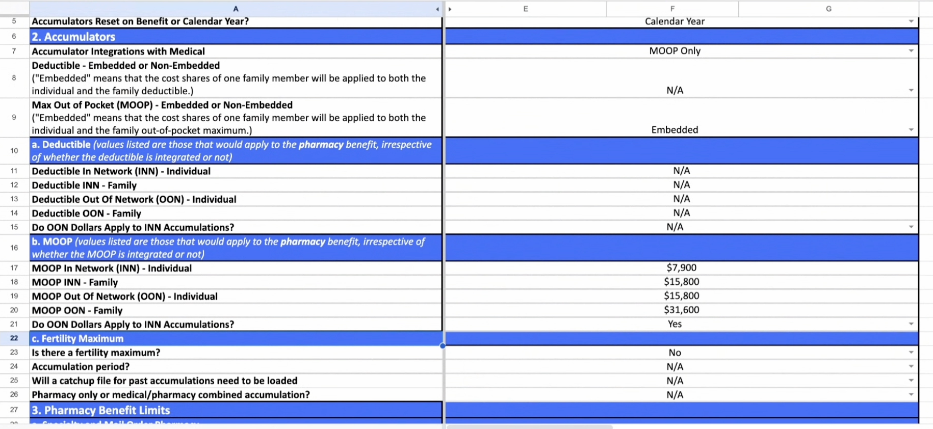 Includes cost-share options, preventive lists, and care plan rules.