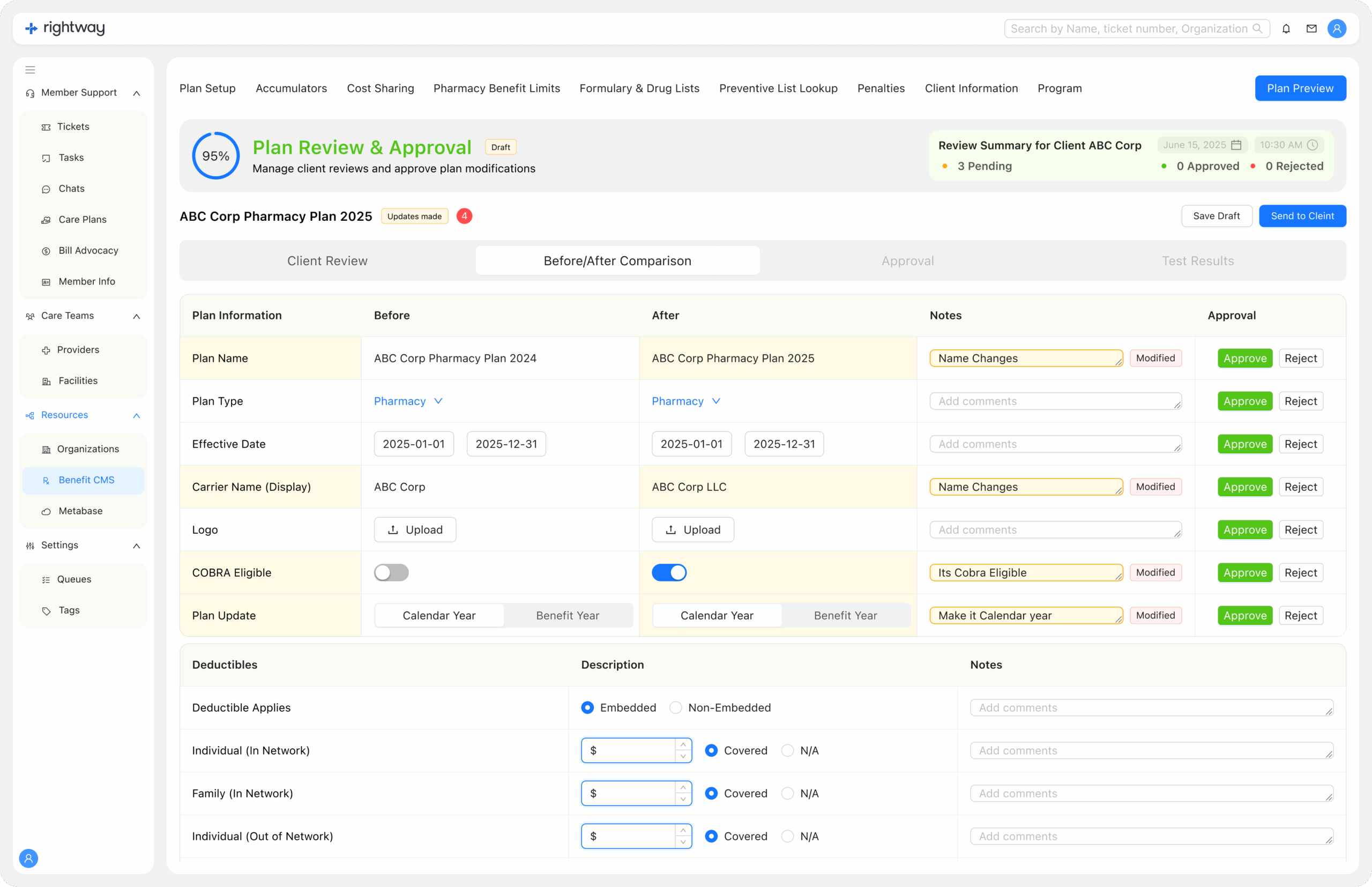 Draft plan is sent for client/member review via portal.