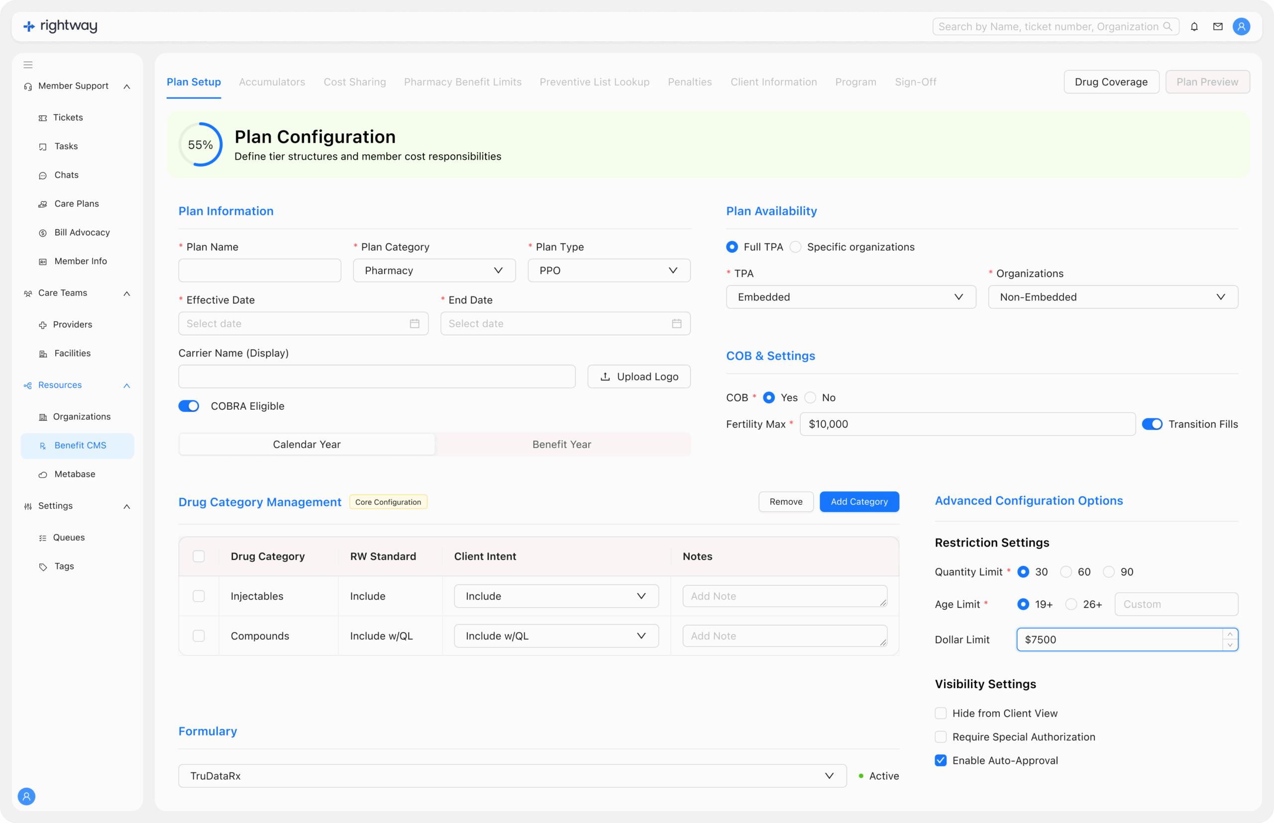 Members can make edits directly (e.g., coverage preferences, preventive drug list).